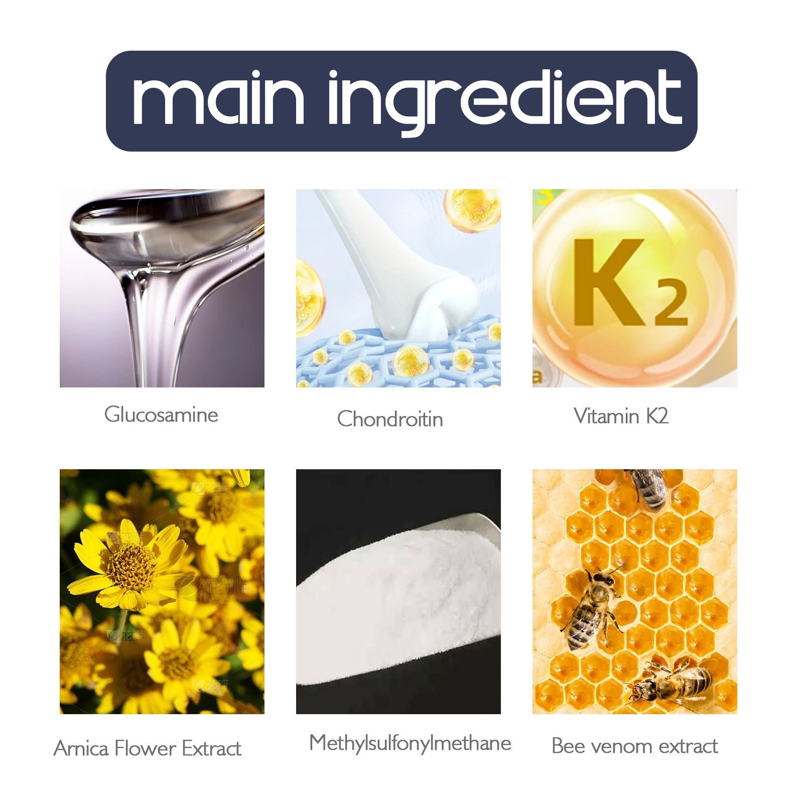 Our bee Venom joint cream contains bee venom extract, Arnica flower extract, glucosamine.
