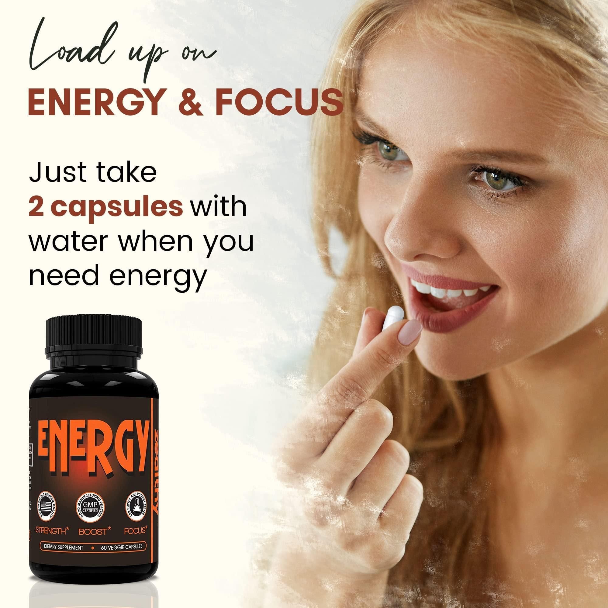 Caffeine Pills Alternative to an Energy Drink Energy Gel or Energy Gummies All Natural Energy Supplements Energy Pills with Elderberry 60 Capsules