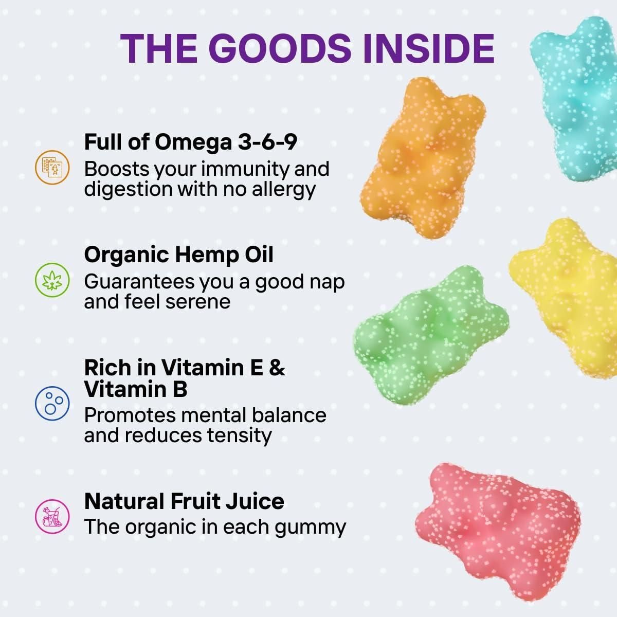 1.the most delicious remedy: learn how tasty deliverance from all discomfort can be with our sweet h–µm—Ä bears to soothe your muscles and joints, making all discomfort disappear and enhancing your mobility and energy high potency h–µm—Ä extract: rely on a safe and highly effective component to end irritation and hurting in your body, putting the nervous system at ease focus on important tasks with no inner distractions stay healthy, stay fit: leading a healthy lifestyle may come at a cost of