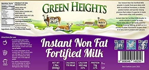 Instant Fortified Nonfat Milk Powder Jar 2 Pound / 900 GMS Jar (28+ Servings) - Proudly Made in America - Healthy Nourishing Essentials by Green Heigh Instant Fortified Nonfat Milk Powder Jar 2 Pound / 900 GMS Jar (28+ Servings) - Proudly Made in America - Healthy Nourishing Essentials by Green Heigh