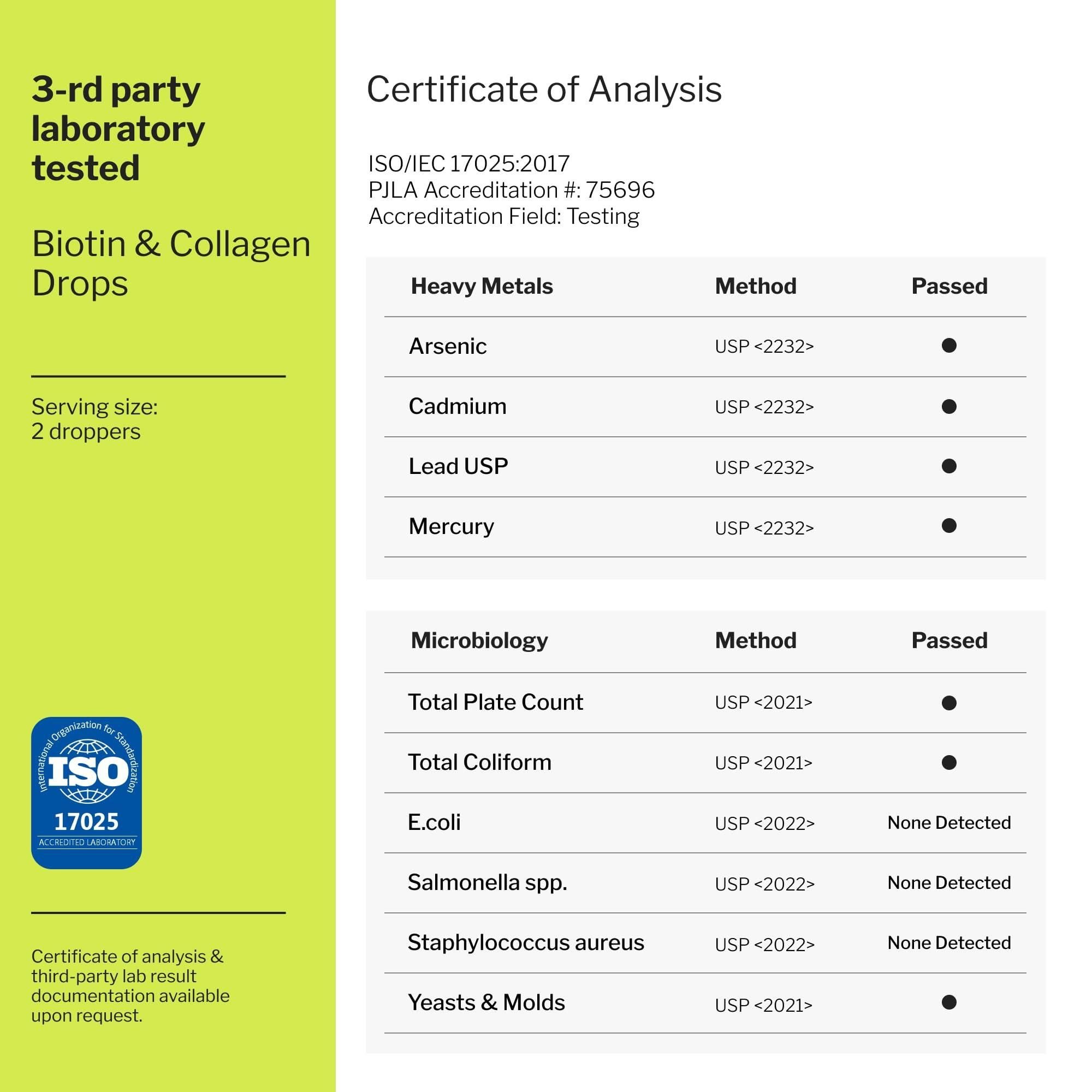 4.powerful formula with liquid collagen - extra strength biotin and collagen drops mean you don't have to wait for results. our hair growth supplements work equally well for men and women. fall in love with your hair, with liquid biotin and collagen vitamins for women & men promotes growth, shine, and volume.