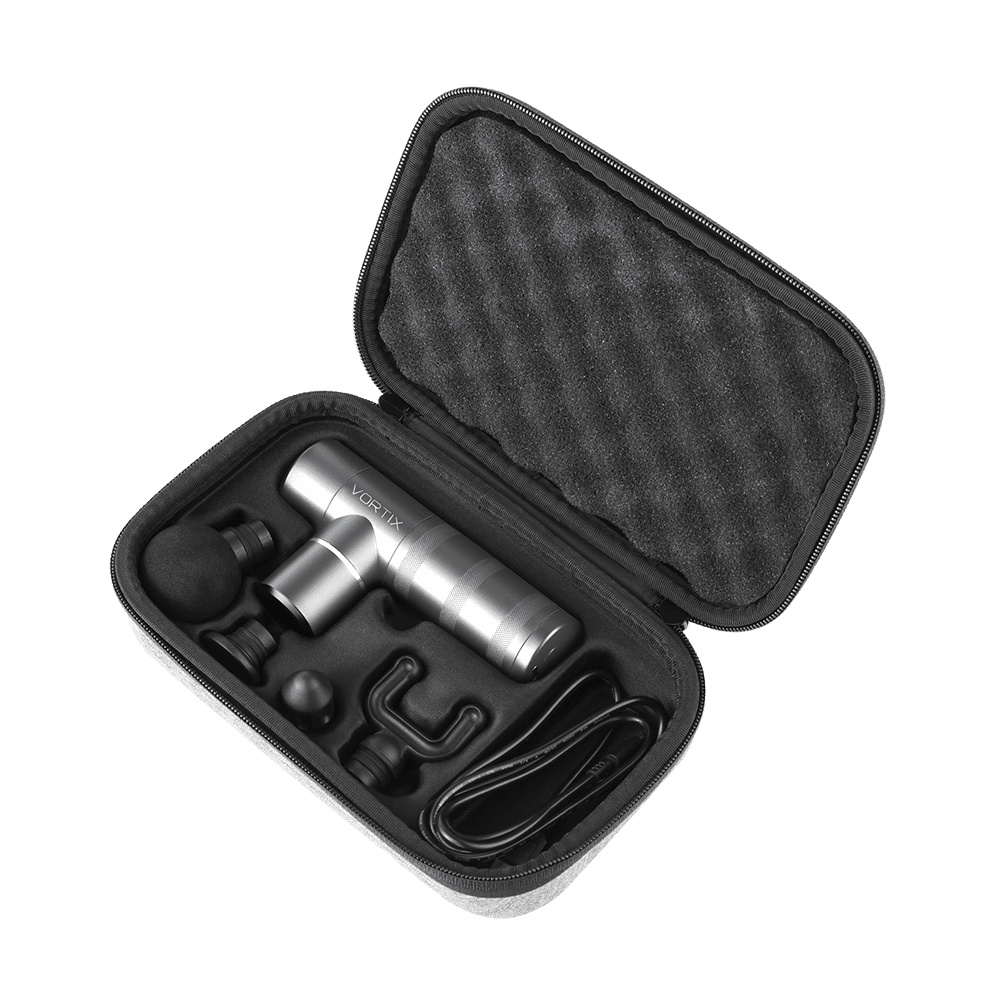 The Mini Gun Massager is an effective way to break up tough knots and relieve muscle tension. This compact massager puts the power of deep tissue massage in the palm of your hand with a quiet, yet powerful brushless motor which features 4-speed levels up to 3000 RPM and 4-interchangeable heads to suit all your needs. No bigger than a standard smartphone, the massager is lightweight and wireless.