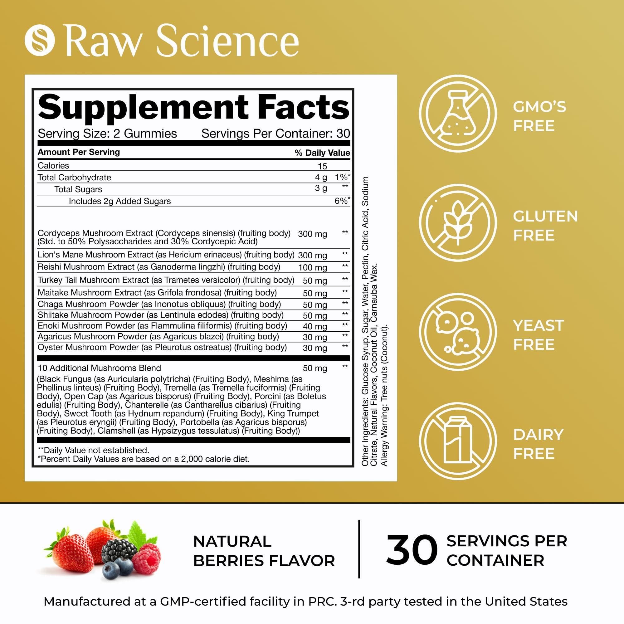 3.immune support masterclass- harness the power of shiitake mushroom powder, turkey tail mushroom, and chaga mushrooms powder, expertly crafted in this mushroom immune support gummies. elevate your health with maitake mushroom extract and enoki mushrooms, forming the ultimate immune complex to combat life's challenges. stay resilient, stay radiant!