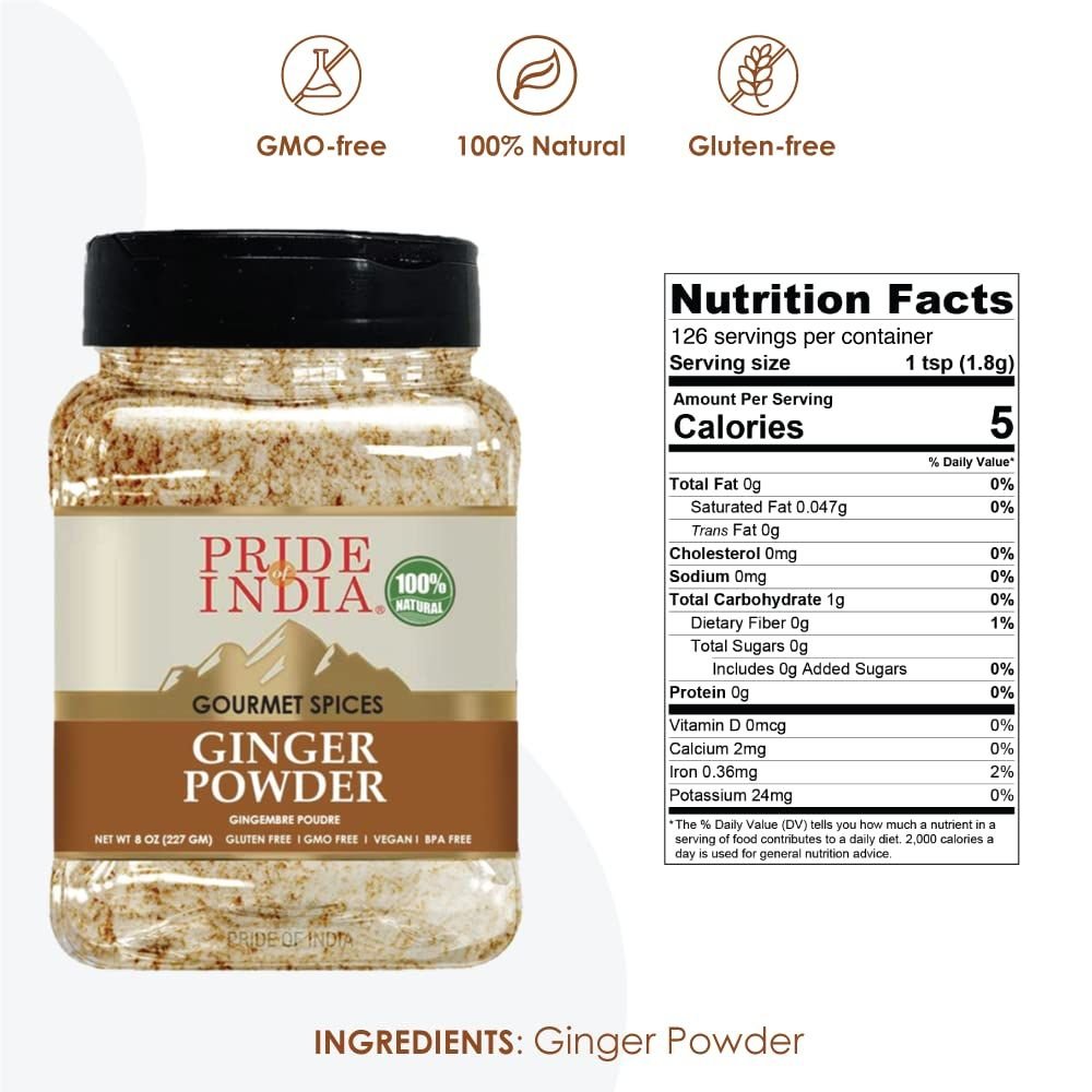 Home > Pride of India – Ginger Fine Ground – Gourmet Spice – Blends Well – Good for Cooking/Baking/Tea & More – No Additives – Fresh Root Powder
