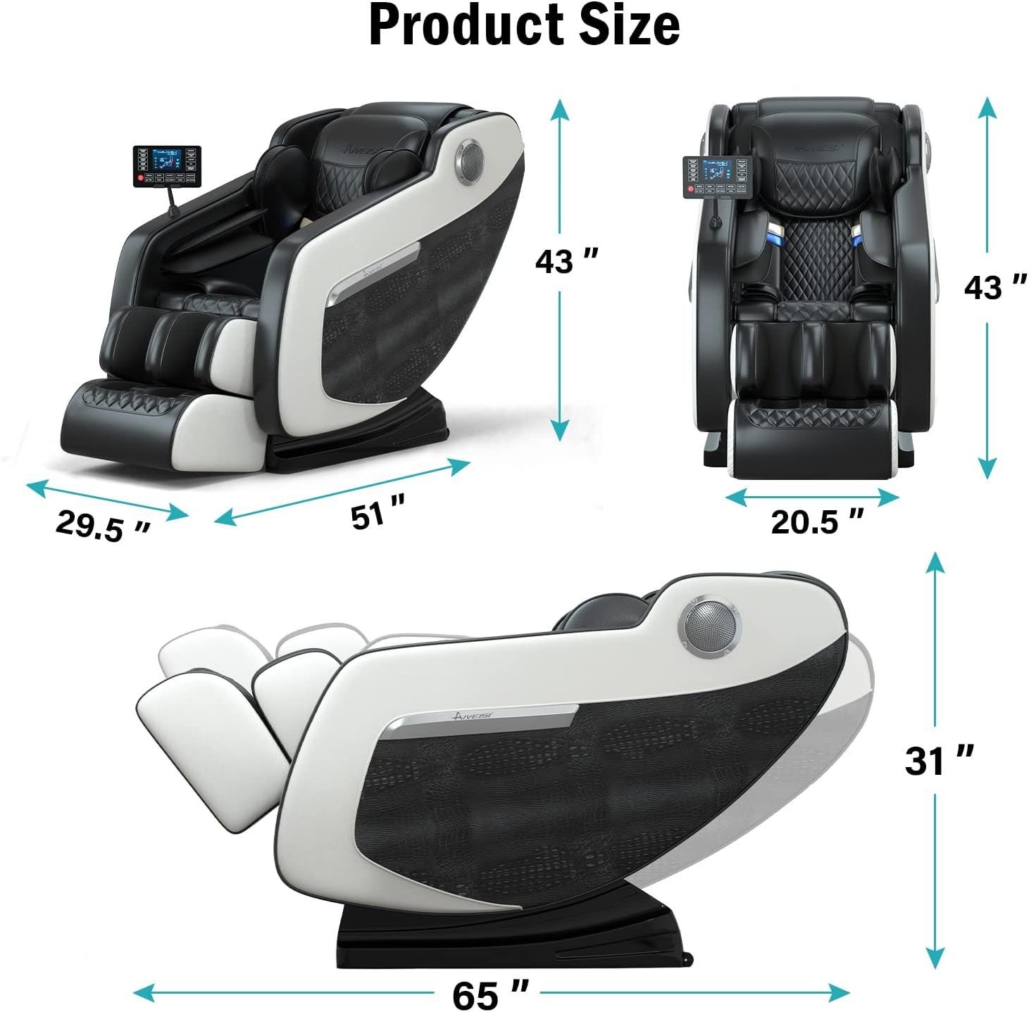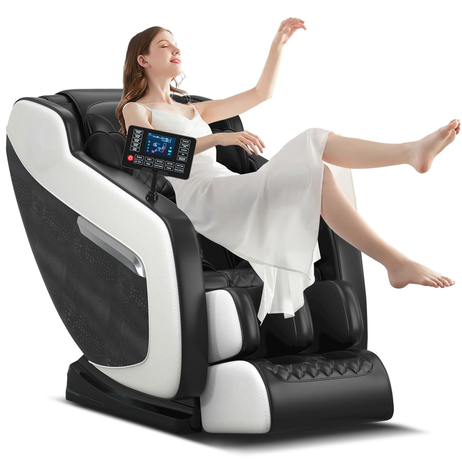 Massage chair, full body zero gravity recliner, with hip heating, foot massage and air massage system, suitable for mom/dad (pure black).