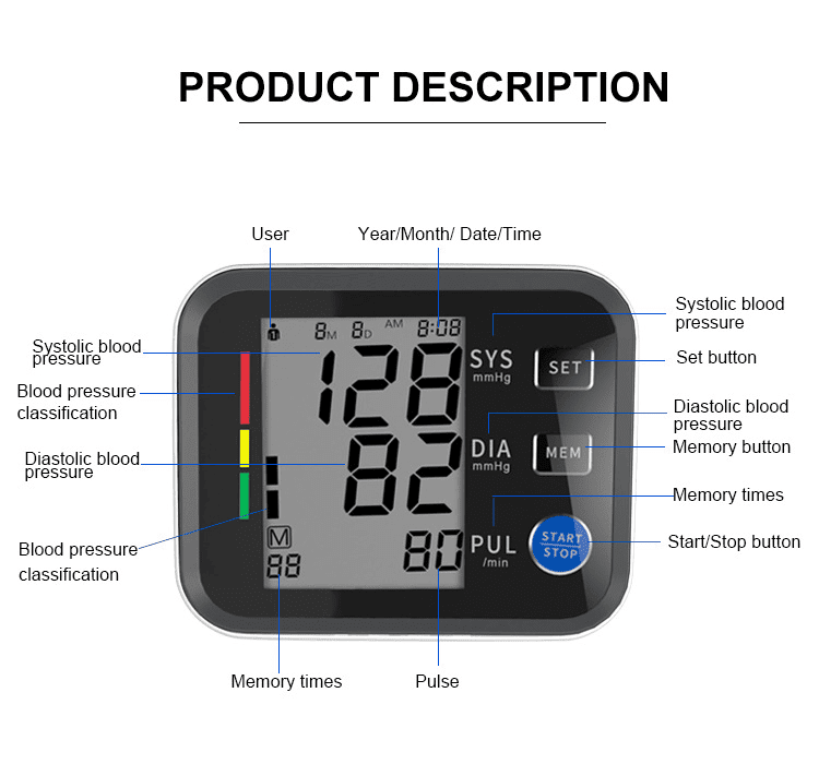 Commodity function: measuring blood pressure, heart rate and pulse, measurement principle, oscillation measurement method, measuring the upper arm position, heart rate measurement, personal health care, bp machine high-precision automatic electronic digital sphygmomanometer