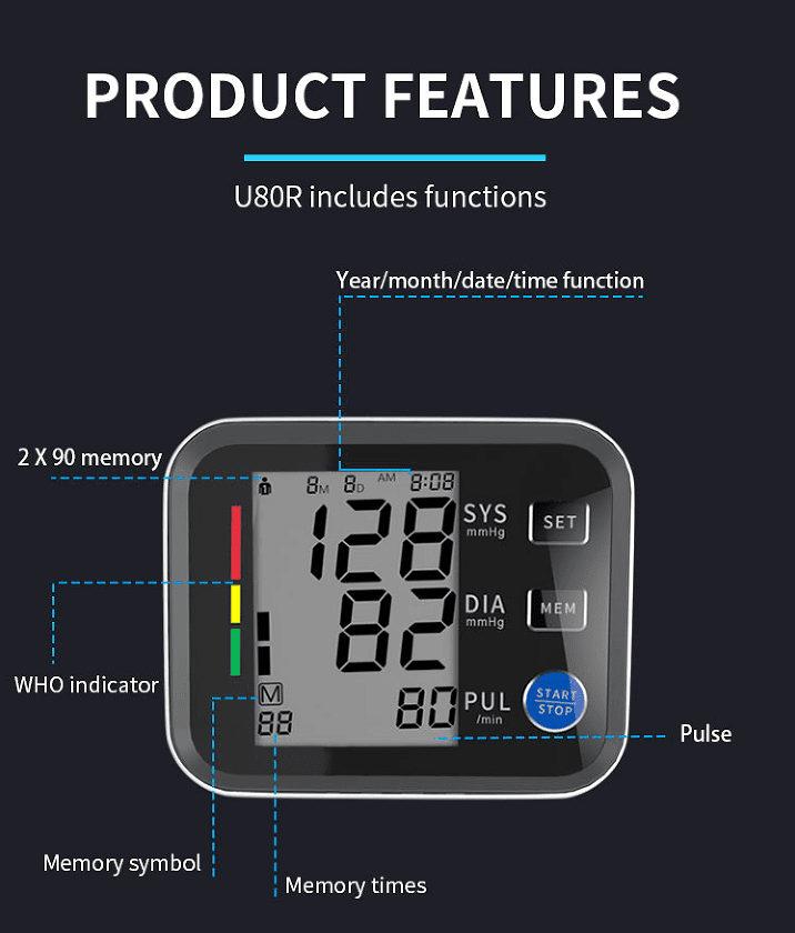 SKU: PSU80EH blood pressure meter children and elderly electronic sphygmomanometer LCD7660mm cuff 22 * 42cm off 180 seconds 90 measurements, upper arm electronic blood pressure monitor measure blood pressure heart rate pulse bp machine high precision automatic sphygmomanometer time and date display portable wrist sphygmomanometer medical electronic digital sphygmomanometer
