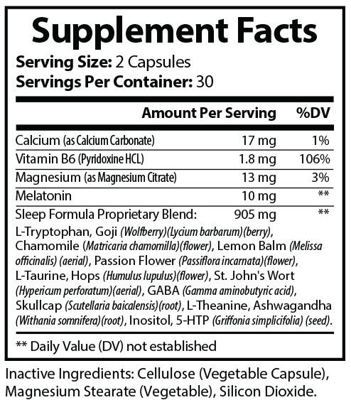 We added calcium, vitamin b to help support the natural production of melatonin. We also added magnesium to help calm and relax the muscles to get closer to a sedentary state. Magnesium has been shown to help individuals who suffer from insomnia improve their insomnia severity index (ISI), sleep efficiency, sleep time and sleep onset latency and early morning awakening.